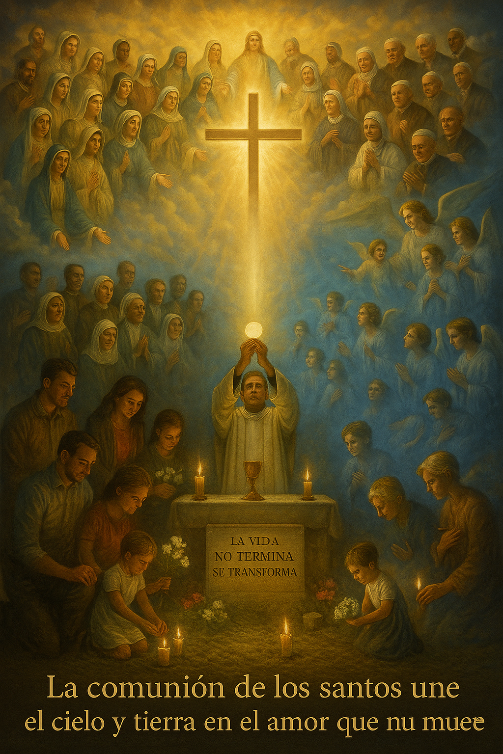 Pensar, sentir y actuar: somos parte de una Iglesia viva y unida en Cristo, donde nadie está solo ni olvidado, ni en la tierra ni en la eternidad; el amor de Dios es más fuerte que la muerte, y cada oración, cada Misa y cada donación hecha con fe se convierten en consuelo para el alma y en bendición para la Iglesia; por eso, oremos por los difuntos con amor, visitemos los cementerios con respeto y ofrezcamos nuestras intenciones con generosidad, uniendo así nuestra vida a la misión de la Iglesia, que con caridad y esperanza anuncia al mundo que Cristo ha vencido la muerte.