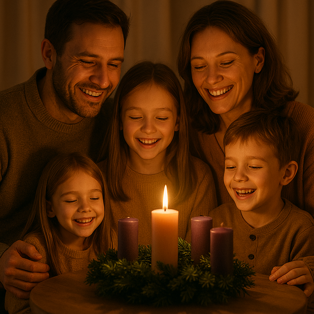 En la vida familiar, esta alegría se vuelve testimonio. Una familia que elige alegrarse, aun en la prueba, se convierte en luz para los demás. No porque todo sea fácil, sino porque decide confiar. Esa elección cotidiana —sonreír a pesar del cansancio, agradecer aun en la escasez, sostener al otro cuando flaquea— ilumina más que cualquier adorno. La alegría compartida fortalece los vínculos y crea un clima donde la esperanza respira.