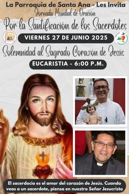 INVITACIÓN ESPECIAL – JORNADA DE ORACIÓN POR LA SANTIFICACIÓN DE LOS SACERDOTESQueridos miembros de los apostolados y amados feligreses de la parroquia de Santa Ana:En el marco de la Solemnidad del Sagrado Coraz..