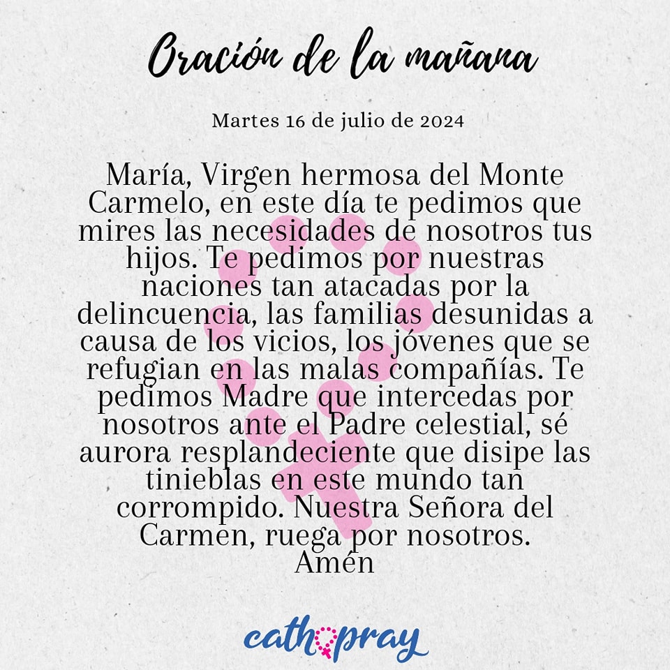 Que la Bienaventurada Virgen María del Monte Carmelo nos inspire a vivir con una fe firme y un corazón dispuesto a la conversión, para que, al igual que ella, podamos responder con amor y obediencia al llamado de Dios.