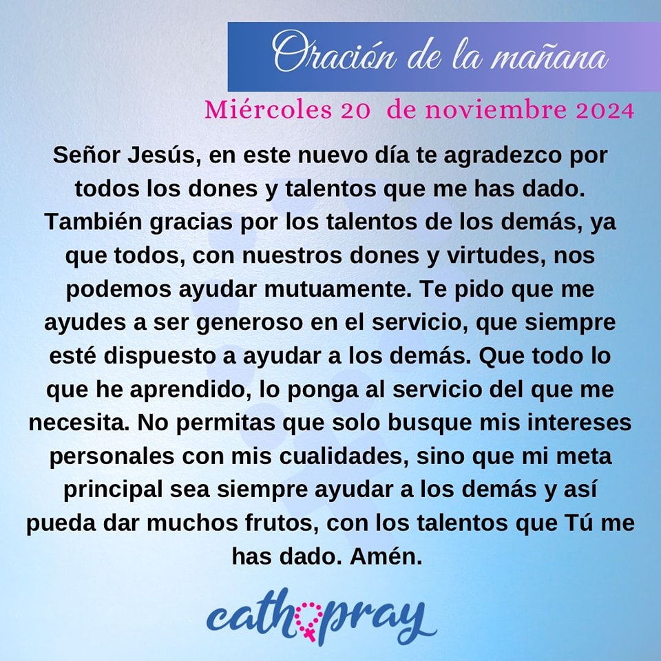 Identifica un don que Dios te ha dado, ya sea tiempo, habilidades o recursos, y busca una forma concreta de usarlo hoy para el bien de los demás.