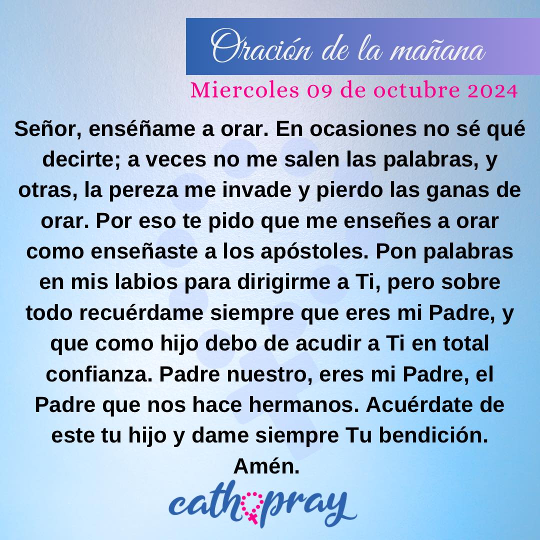 Cada día, detente unos minutos en oración y reza el Padre Nuestro con atención y devoción. Al hacerlo, deja que cada palabra penetre en tu corazón y te invite a vivir según la voluntad de Dios, reconociéndolo como el Padre amoroso que te guía.