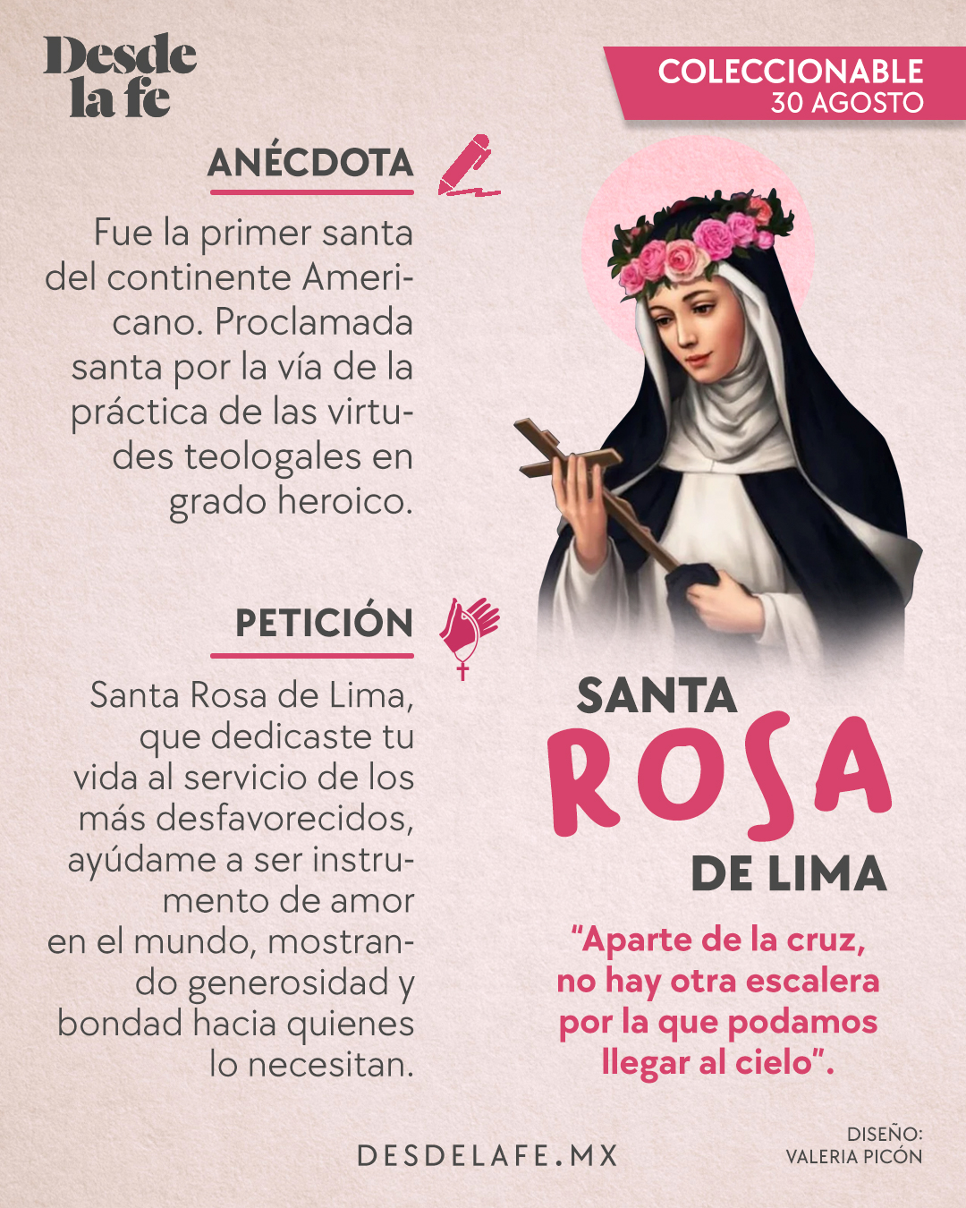 Que el ejemplo de Santa Rosa nos inspire a vivir con humildad y devoción, encontrando en cada sacrificio una oportunidad para estar más cerca de Dios.