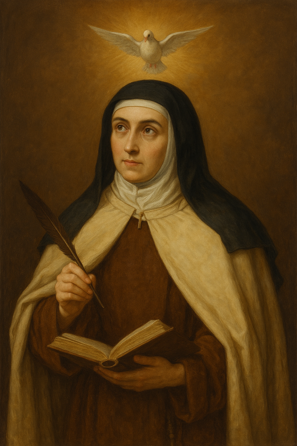 Teresa Sánchez de Cepeda Dávila y Ahumada creció en una familia numerosa y profundamente cristiana. Desde niña sentía fascinación por los santos y soñaba con “ver a Dios para siempre”. A los 20 años ingresó al Convento de la Encarnación de las Carmelitas en Ávila, donde comenzó una larga experiencia de purificación interior.