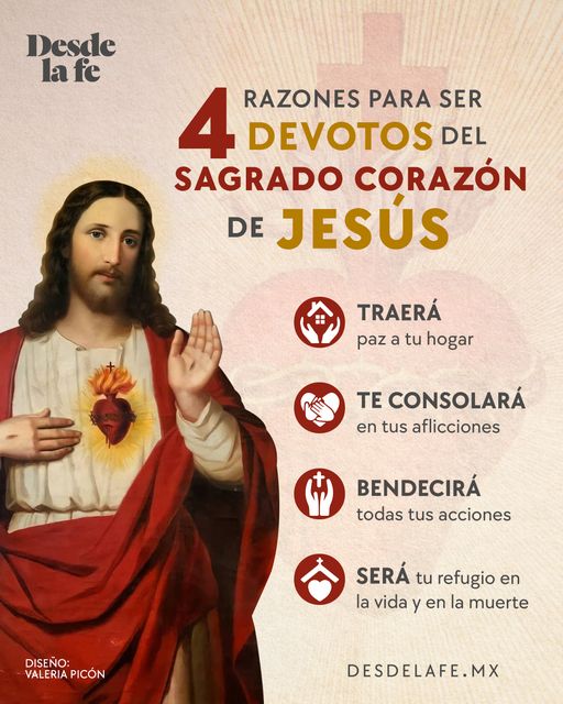 Dedica tiempo hoy a la oración frente a la imagen del Sagrado Corazón de Jesús. Pide que te conceda un corazón humilde, capaz de amar y servir, dejando de lado las apariencias y viviendo según el Espíritu Santo. Si no tienes una imagen, considera colocar una en tu hogar como signo de confianza en las promesas del Sagrado Corazón.